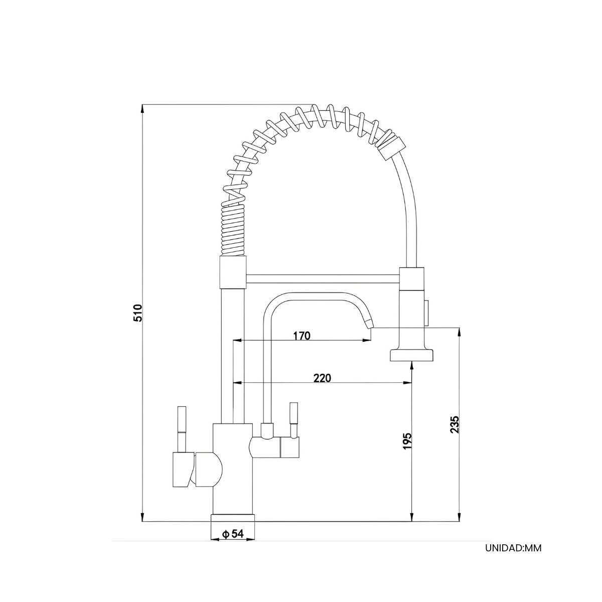 Con un elegante acabado en Negro, esta grifería es ideal para cocinas que requieren versatilidad y estilo.